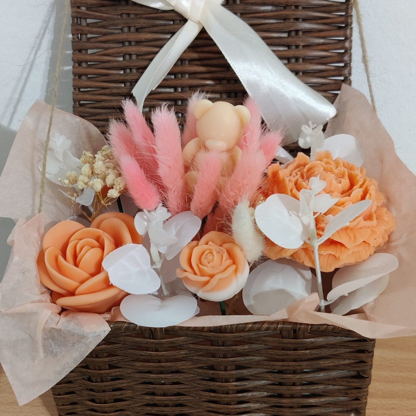 Nos paniers de fleurs en bougies, bouquets en fil chenille et bougies gourmandes en coupes de glace sont réalisés avec soin et passion. Chaque pièce est conçue pour apporter une touche chaleureuse et personnalisée, idéale pour embellir votre intérieur ou offrir un cadeau unique et délicat.